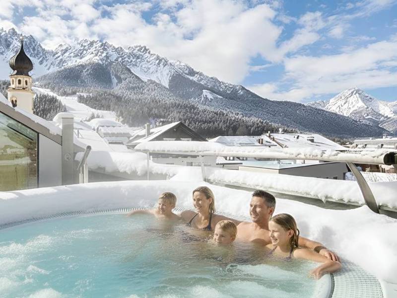 Our Hotel Weißes Rössl is the only 4-star superior hotel in Innichen in Hochpustertal and it is characterized by traditional hospitality, a special ambience and inviting premises in elegant Tyrolean style. At your disposal are romantic and modern rooms and luxurious suites, which are furnished with phone, satellite TV, radio, minibar, safe, hairdryer, bathrobe and slippers. Most rooms have also a balcony. In the restaurant belonging to the hotel, we will spoil you with delicious menus, regional specialties and a rich breakfast buffet. Quiet and relaxation are offered by our spa world with panoramic sauna, outdoor whirlpool, indoor swimming pool, lemon grotto, tropical showers, solarium and more.