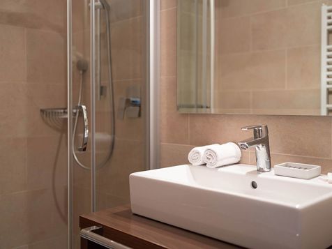 Our guests are offered inviting apartments, which are ideal for 2 to 4 persons. They are equipped with all comforts, offer a cosy atmosphere as well as spacious wooden terraces or balconies. The apartment themselves are also furnished with natural materials and have a kitchen living with dishwasher, a bedroom and a bathroom with shower/WC, hairdryer, satellite TV and WLAN. Bed linen, towels, a ski room with ski shoe dryer as well as a private car parking are available too. Thanks to the advantageous position of our house, you can find everything necessary for your holidays at the doorstep. Various shops, cafés, restaurants, a pharmacy, a butcher’s shop, the tourist office, a ski shuttle stop and much more can be found in the immediate environs. A bakery as well as a ski and bike rental is available directly in our house.
