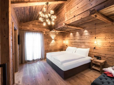 The Refuge Salei is open all year round and offers only the best for your holiday: an informal self-service restaurant, pizzeria, à la carte restaurant, bar, cosy indoor and outdoor lounges ideal for relaxing, après-ski (in the winter season) with music every day and live music twice a week. Our guests can also count on a cosy wellness centre with spa, saunas, swimming pool, relaxation rooms and outdoor terrace. Our rooms are divided into four types: Junior Suite, Deluxe, Romantic and Standard and have all been designed with great care and attention to detail. The atmosphere they provide is truly timeless, thanks to the materials and design chosen. Each room has a panoramic balcony, TV, minibar, safe, bathroom and many other amenities. Internet and Wi-Fi are available throughout the house. We also have a bike storage room for two-wheel enthusiasts.